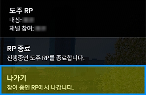 이미지 설명 나가기를 클릭하여 참여 중인 RP에서 나갑니다.