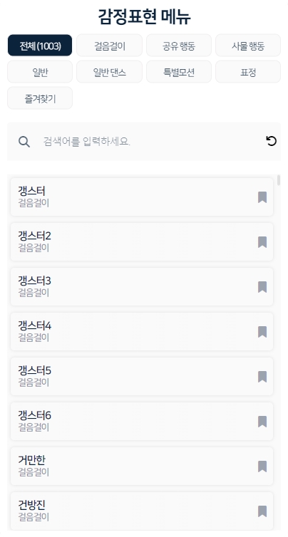 감정표현 메뉴
