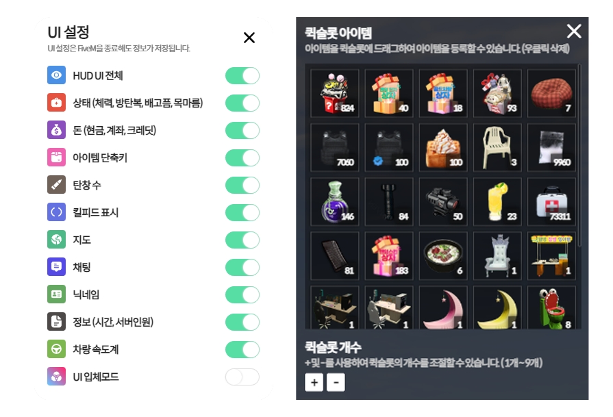 퀵슬롯 설정 자주 사용하는 아이템을 단축키(