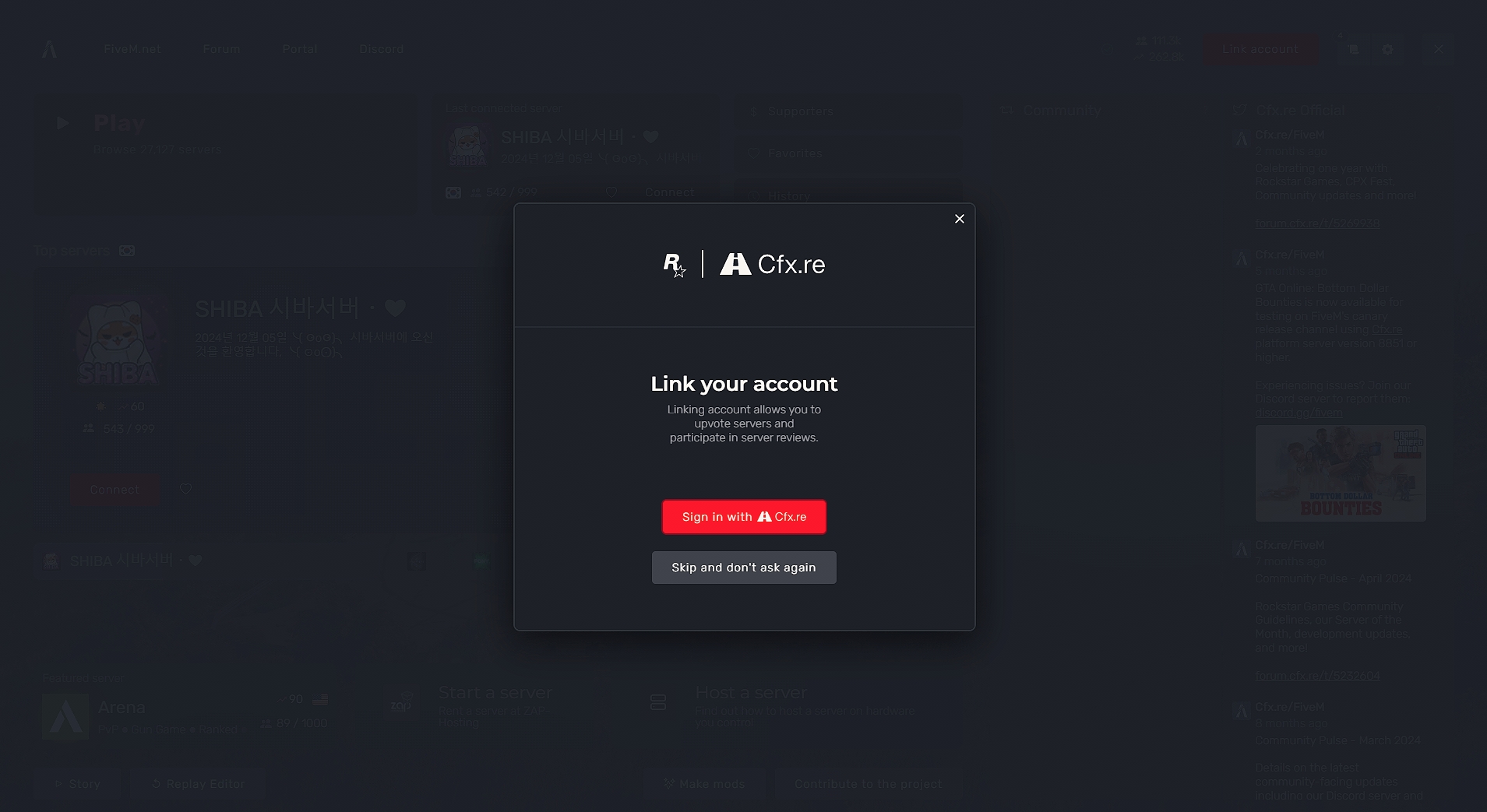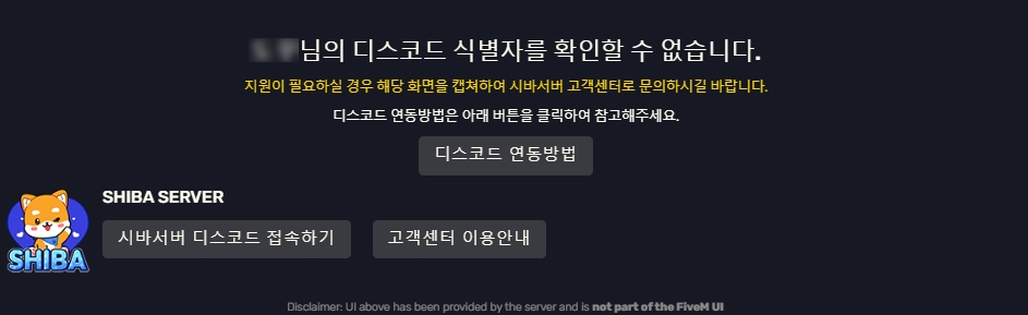 문제가 반복되면 FiveM 재설치 또는 시바서버 고객센터로 문의해 주세요.