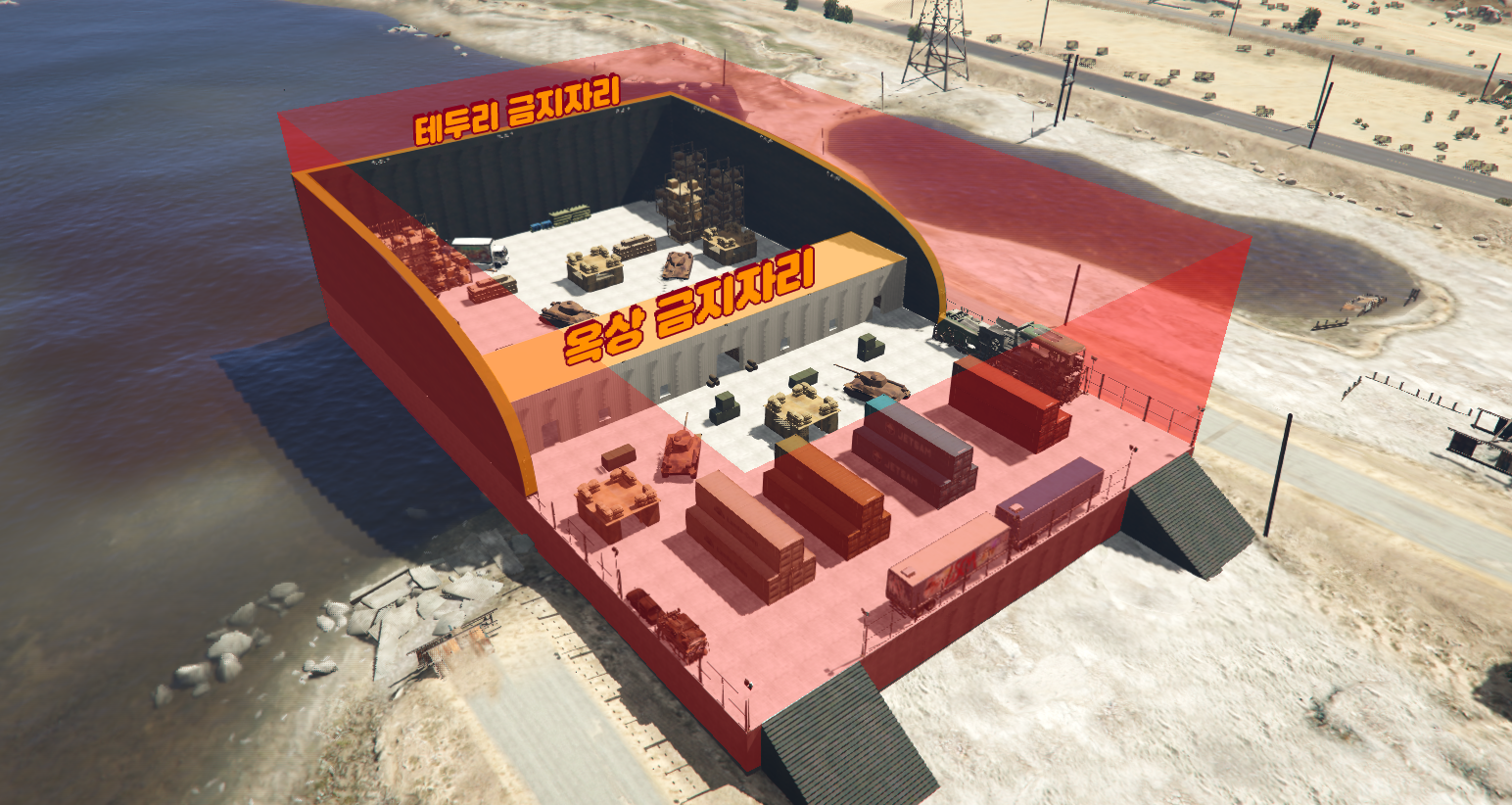 헬기로 밀수품 창고 옥상 착륙 가능 단 옥상에서의 사격은 불가 (옥상에서 밀수품 범위내 낙하산 이용 가능)